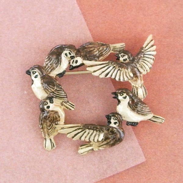 《鳥/すずめ》 ブローチ スズメの会合 |